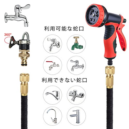 - 【収納進化】 ◎ 伸縮性に優れるホースは通水後自体の3倍に延びる、水を抜けばたちまち縮んで片付け便利!◎ ホースが放水した後軽量かつコンパクトになり、老人も女性も楽に収納できます!◎ 光沢ある収納ポケットが付属高級感溢れ、プレゼントとしても最高!