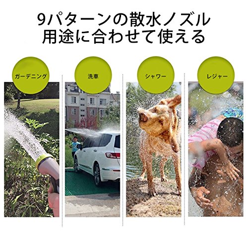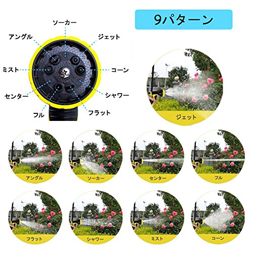 - 【魔法で9パターンまで】最新型のマジック散水ホースは10パターンのマルチスプレーノズル付き、ヘッドを回りますと自由に水量を調節でき、オールシーンに使用いただけます