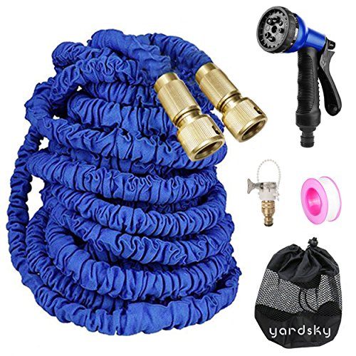 Yardsky 伸びる ホース 30m マジックホース 超強化 延長 改良版 収納 ノズル 三層構造 金属製 3倍伸縮 ガーデニング 洗車 日本語取扱説明書付属(ブルー)
