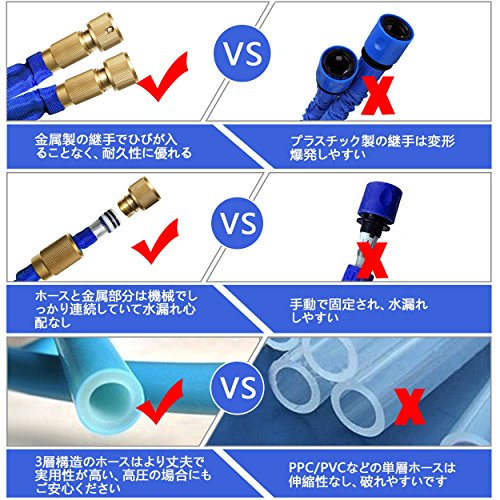- ☞【チューブ進化】❀二層構造の天然ラテックスを採用、従来のホースと比べ耐久性5倍なので大安心❀5℃から45℃までの環境温度に利用でき、温度の原因で摩耗することはありません❀磨耗と高圧にもより優れ、通水中に自動車のタイヤで踏んでも、鋭く尖ったものに接触しても破裂しません