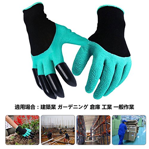 Yardsky ガーデングローブ 爪つき 手袋 作業用 植栽 防水 防刃 すべり止め 軍手 園芸 掘り 4ペア セット グリーン