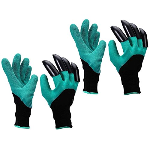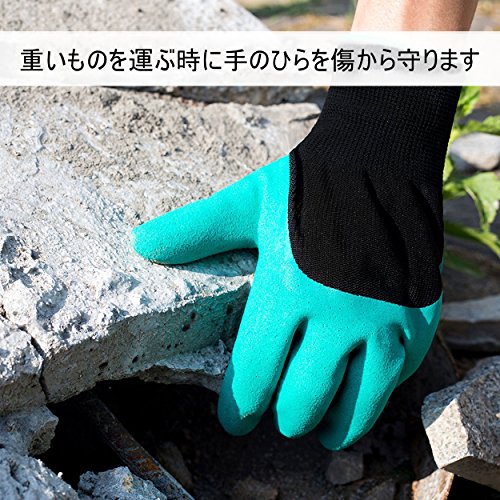 Yardsky ガーデン グローブ 防水 右爪つき 2ペア セット 植栽 手袋 園芸 滑り止め 緑