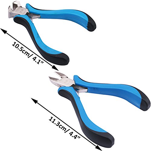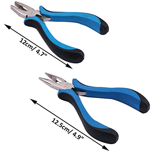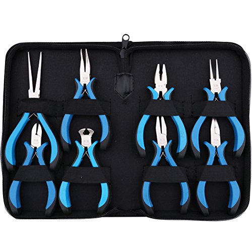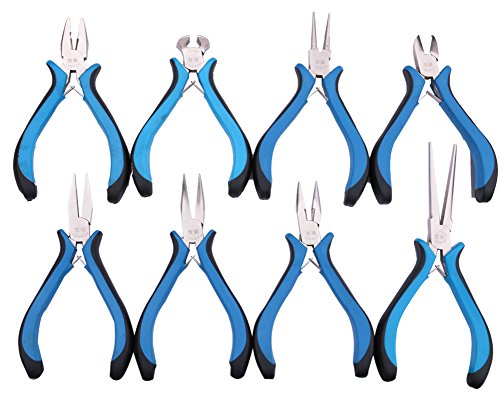 Yeecoo 8ピース ミニ ペンチ セット ブルーハンドルで、 ラインスプライヤー、斜め曲げ/曲がった曲げ/針のノーズ/フラット/シャープラウンドノーズジュエリープライヤー、ソリッドジョイントエンドカットクッショングリップワイヤーニッパー 修復ツール