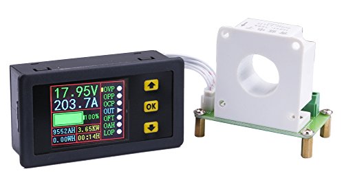 Yeecoo デジタルDC電圧計電流計マルチメーター、10-90V 0-200A LCDカラー表示電圧アンペアパワーワットクーロン容量時間計テスターホールセンサー付テスタ検査器