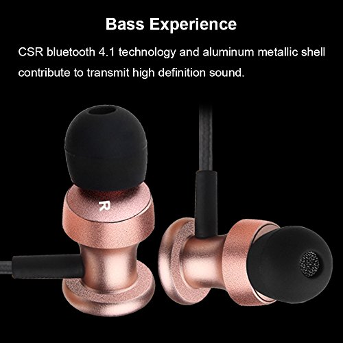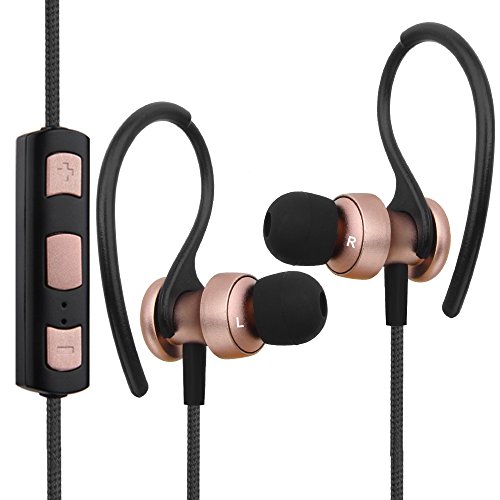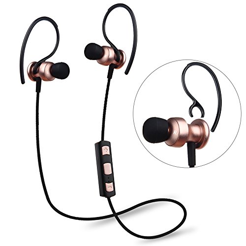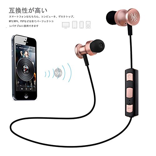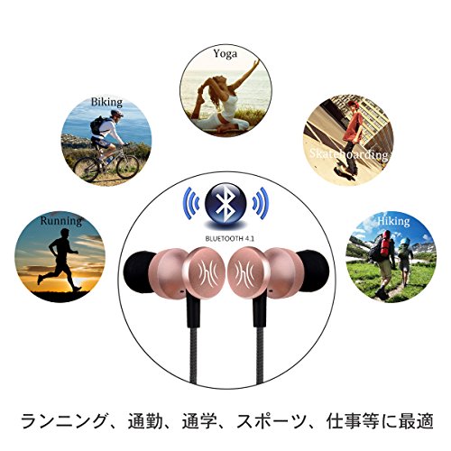 Bluetooth 4.1 イヤホン ステレオ 防汗防滴 マイク内蔵式 耳掛け式 ワイヤレスイヤホン ランニング用 スポーツ イヤホン【メーカー1年保証】 (ローズゴールド)