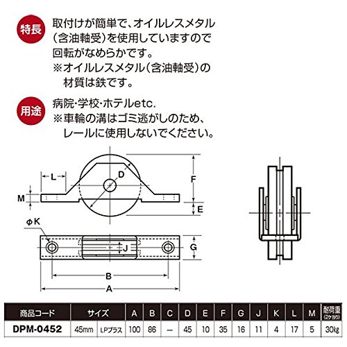 - ヨコヅナ Uステンレスレール用戸車 鉄枠LP車 45mm平 DPM-0452 [4個入] 取付けが簡単で、オイルレスメタル(含油軸受)を使用していますので回転がなめらかです。※オイルレスメタル(含油軸受)の材質は鉄