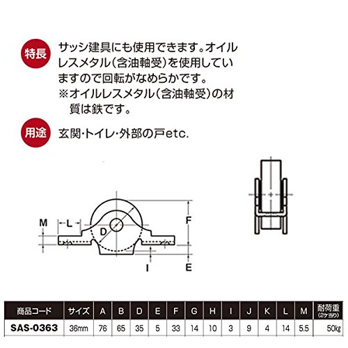 - ヨコヅナ ステンレス戸車 36mm袖平 SAS-0363 [12個入] サッシ建具にも使用できます。オイルレスメタル(含油軸受)を使用していますので回転がなめらかです。※オイルレスメタル(含油軸受)の材質は鉄で
