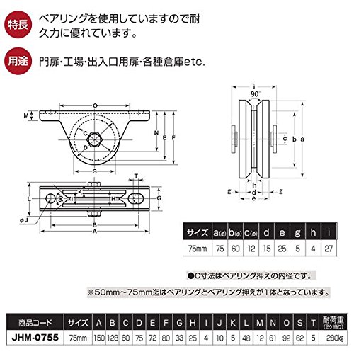 - ヨコヅナ 鉄重量戸車 V型 枠付 75mm JHM-0755 [2個入] レールのある門扉などに使用できます。レールの形状がアングルタイプに使用できます。ベアリングを使用していますので耐久力に優れています。 用途: