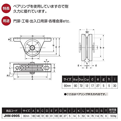- ヨコヅナ 鉄重量戸車 V型 枠付 90mm JHM-0905 [2個入] レールのある門扉などに使用できます。レールの形状がアングルタイプに使用できます。ベアリングを使用していますので耐久力に優れています。 用途: