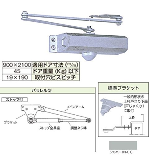 パラレル型・ストップ付(ストップ角度70~180°)・ドア重量45kgまで