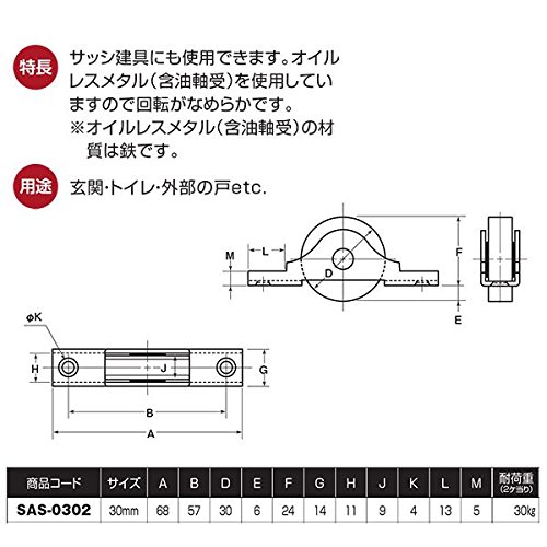 - ヨコヅナ SAS-0302 ステンレス戸車 30mm平 [12個入] サッシ建具にも使用できます。オイルレスメタル(含油軸受)を使用していますので回転がなめらかです。※オイルレスメタル(含油軸受)の材質は鉄です