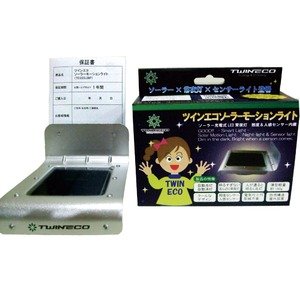 【出荷目安】:2 - 8営業日 ※土日・祝除く 【同梱区分】:TS 1909 【梱包サイズ】:通常商品 電源不要!電気代ゼロ!簡単設置!メンテ不要! 好評につき4個セット登場。 ソーラー×常夜灯×センサーライト登場! 日中に太陽光で発電・充電し、暗くなると薄明るい常夜灯になります。人が近づくと強く光ります。いなくなると30秒ほどで常夜灯に戻ります。軽量!スタイリッシュ!コンパクト!電源不要!照度&人感センサー内蔵!常夜灯にも! 電源不要なうえ、160グラムと軽量・コンパクトなのでベランダや玄関など場所を選ばず取り付けは容易です。ライトは昼光色(白)になります。 【商品名】 ツインエコソーラーモーションライト(2015年モデル) 【型番】 TESSSL08P 【電源】 太陽光 【メーカー/販売元】 ツインエコ 【生産国】 中国 【カラー】 白 【材質】 アルミニウム・ABS 【本体サイズ】 幅×奥行×高さ:12.5cm*9cm*3.5cm 【本体重量】 160グラム 【その他スペック】 高性能LEDチップ4個搭載 全灯時100ルーメン(10W電球相当)/半灯時10ルーメン 照度センサー人感センサー内蔵 リチウムイオンバッテリ800mAh 素材:アルミニウム/耐候ABS樹脂 【使用方法】 日当りの良い所にネジや結束バンド・針金などで取付けるだけです 【商品についてのお問合わせ先】 株式会社ツインエコ info@eco2.tokyo 【配送について】 山口県より発送/佐川急便 【特記事項】 【注意事項】 設置に当っては落下することの無いよう、ご留意下さい。万が一落下しても事故の起こらない場所に設置して下さい。