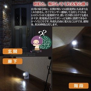 LEDセンサーライト(LED照明) 乾電池式/角度調節可/オートモード付き (玄関/廊下/階段)