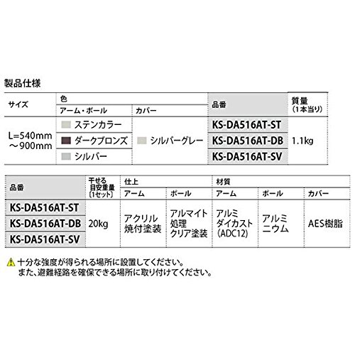 - ナスタ バルコニー物干金物 KS-DA516AT-DB 戸建住宅、集合住宅に最適なバルコニー天井用の物干金物です。 屋根(天井)勾配に対応し、取付角度の調整が可能です。(5寸5分勾配まで)取付穴ピッチ300mm、M1