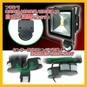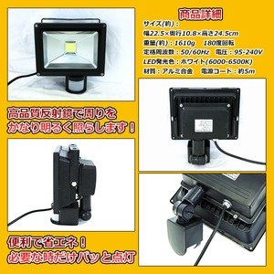 - 【出荷目安】:3 - 8営業日 ※土日・祝除く 【同梱区分】:TS 979 【梱包サイズ】:通常商品 人や物の動きを感知する人感センサー付き 30W LED投光器。 防塵 防水機能で外でも安心して使えます。 ご自宅、お庭、ガレージ、玄関、店舗などで防犯用として使えます。 高品質反射鏡で周りをかなり明るく照らします! 便利で省エネ!必要な時だけパッと点灯。 消し忘れの心配も無く、経済的で安心・安全・省エネ・防犯に役立ちます。 センサー部分はヒンジで可動/好きな角度で固定が可能です。 つまみで発光時間/感知光量/感知距離/を自由に調整できます。 【商品詳細】 サイズ(約):幅22.5×奥行10.8×高さ24.5cm 重量(約):1610g 180度回転 定格周波数:50/60Hz 電圧:95-240V LED発光色:ホワイト(6000-6500K) 材質:アルミ合金 電源コード:約5m 【注意事項】 ・海外輸入品のため、箱及び商品本体にキズ、破れ、割れ、凹み等がある場合がございます。補償等はございませんが、その分お安く …★以降詳細は【商品の説明】文面をご参照下さいませ★