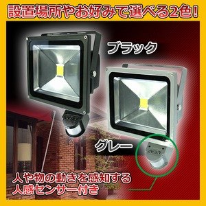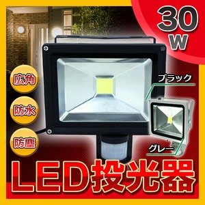 人感センサー付きLED投光器 【30W】 広角120度 防塵/防水機能 シルバー(銀)