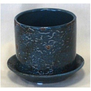 インテリアポット(植木鉢/プランター) ヘイジークラック ラウンド型/22cm 受皿付 ネイビー(紺) 〔ガーデニング用品/園芸〕