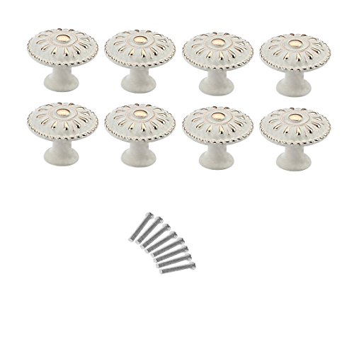 8pcs引き出しノブ, YIFANヨーロピアンスタイルカップボードキャビネットノブワードローブドアプルハンドル( Dia。32.5 MM ) – アイボリーホワイト