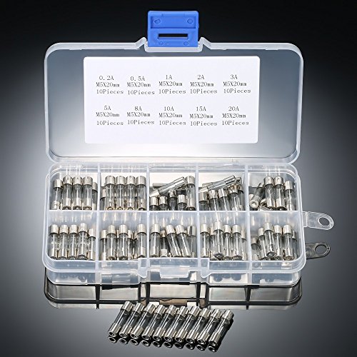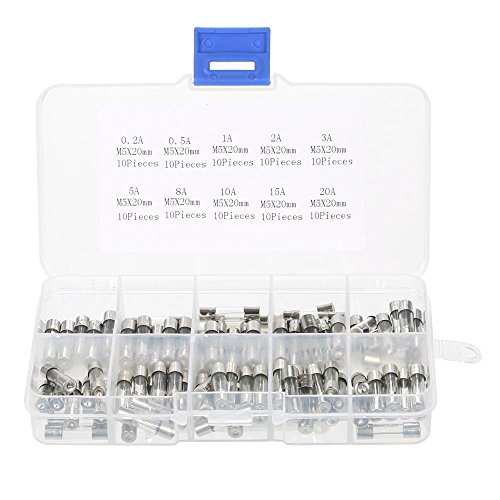 Yiteng 100個5x20mmファーストブローガラスチューブヒューズアソートキットアンプ0.2A 0.5A 1A 2A 3A 5A 8A 10A 15A 20A