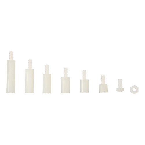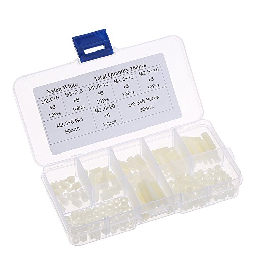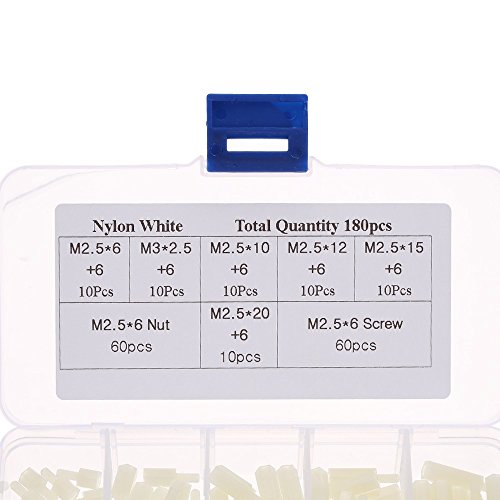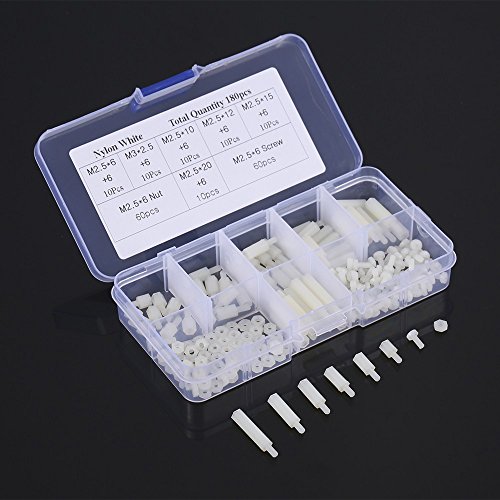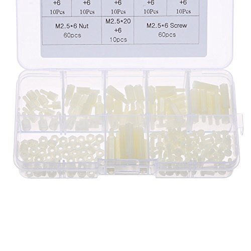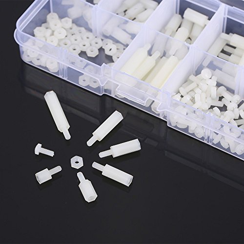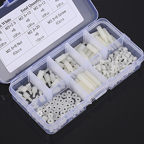 Yiteng M3 / M2.5六角支柱スタンドオフプラスねじメススペーサホワイト/ブラックプラスチックナイロンネジナット各種プラスチック製ボックス付き取り付け金具キット