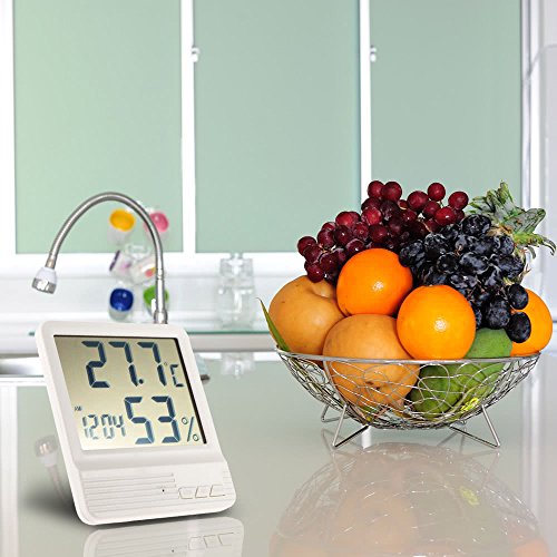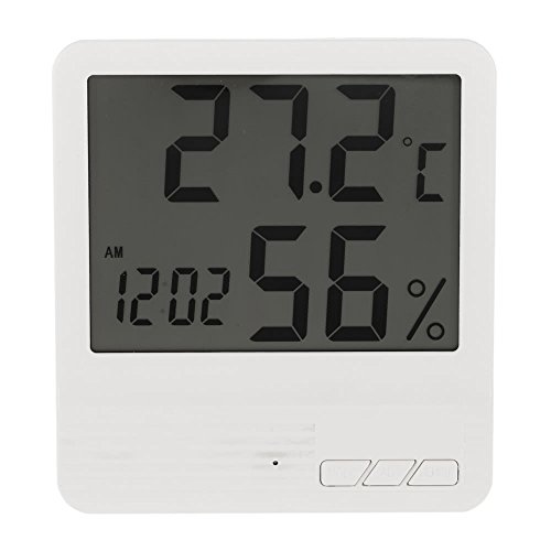 Yiteng 白いデジタル温度計湿度計時計温湿度計カレンダー最大最小値表示