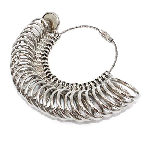 - 【測定時のご注意】リングゲージ 自体の重さで 指 と ゲージ の間に隙間ができ、実際の サイズ より緩くなる場合があります。測定時には、ワイヤーから外すかや手のひらに接地させてお測り下さい。指輪を着ける指の腹より第二関節が太い方は、関節が無理なく通るサイズが適正なサイズとなります。体調などで指のサイズが変化することがございますので、朝夕それぞれ1回ずつ測定してください。