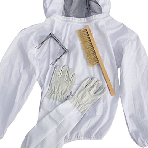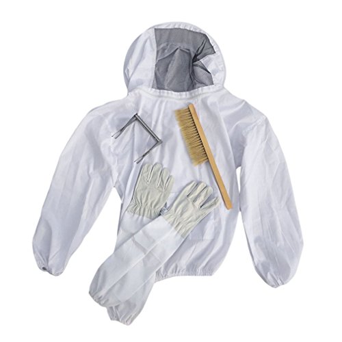 Yiteng 防護服 防護グローブ 害虫駆除 養蜂用 草刈り 虫よけ 1ペアの手袋 ガーデニング 4点セット
