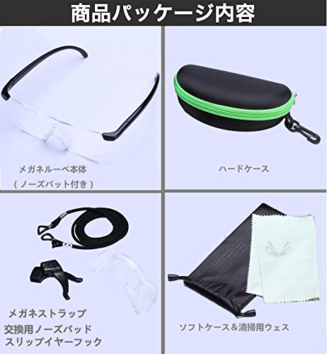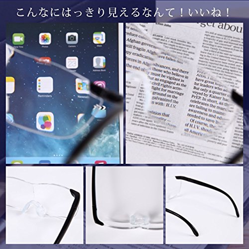 - 老眼鏡とは違い歪み無く1.6倍に拡大してくれるので、文字が大きくハッキリと見える。メガネタイプで両手が使えるので、携帯電話・読み物・手芸・工作等の趣味にも最適