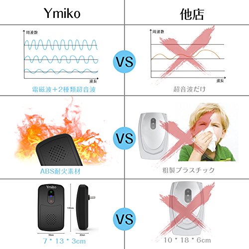 ネズミ駆除機、Ymiko超音波ネズミ撃退器 最新版 無毒&安心 コンセント式 100㎡有効範囲 電磁波+2種類超音波 日本語説明書 ゴキブリ&蚊&ノミ&ダニ撃退器