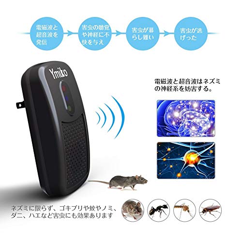 ネズミ撃退器、Ymiko超音波ねずみ駆除 ネズミ駆除機 ネズミよけ 無毒&安心 コンセント式 100㎡有効範囲 電磁波+2種類超音波 日本語説明書 鼠/ゴキブリ/蚊/蟻/蜘蛛対応