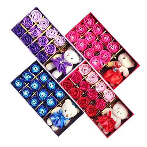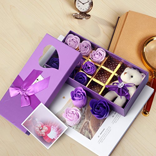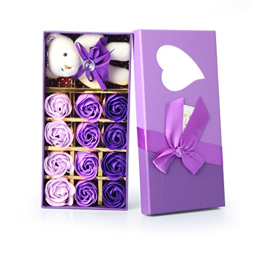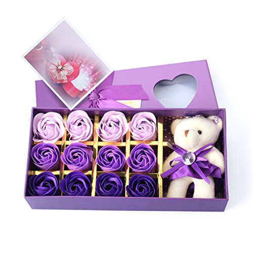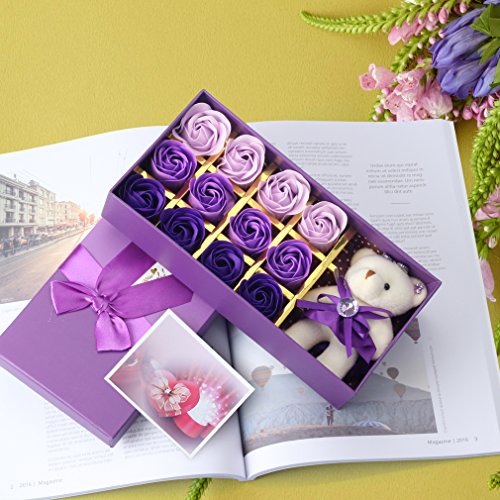Yobansa 造花 フレグランス 石鹸の花 枯れない花 クマ付き 綺麗な花束 ソープフラワー ローズフラワー 贈り物 母の日 誕生日 バレンタインデー 結婚 お祝い (トライカラーパープル)