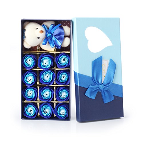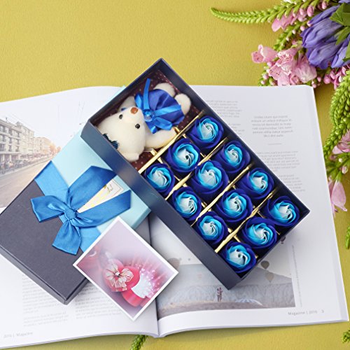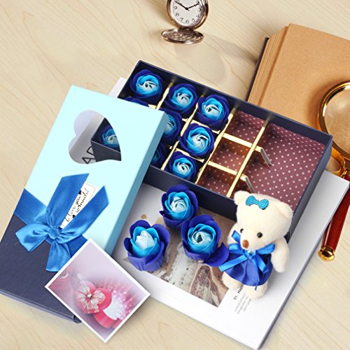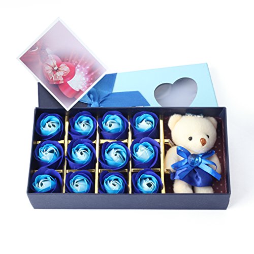 Yobansa 造花 フレグランス 石鹸の花 枯れない花 クマ付き 綺麗な花束 ソープフラワー ローズフラワー 贈り物 母の日 誕生日 バレンタインデー 結婚 お祝い (マルチカラーブルー)