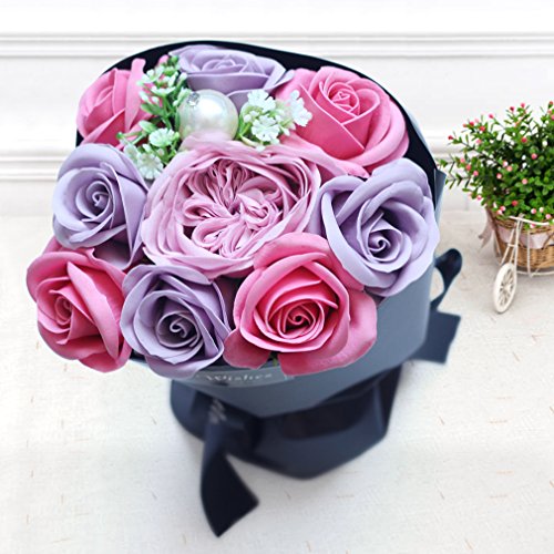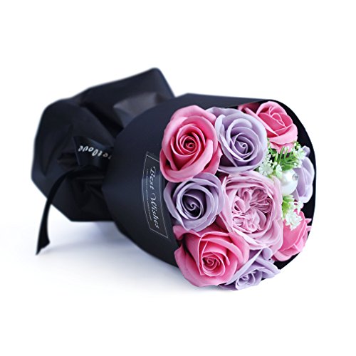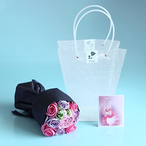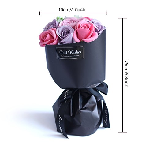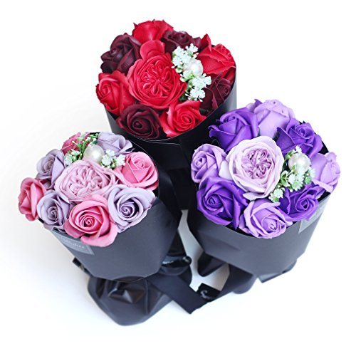 Yobansa 造花 フレグランス ソープフラワー プレゼント 花束 石鹸 薔薇 枯れない 花 バラ ブーケ プレゼント 結婚祝い 誕生日 母の日 父の日 定年祝い 還暦祝い 新築祝い 送別会 メッセージカード付き (ライトレッド)