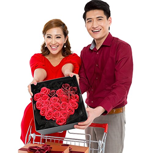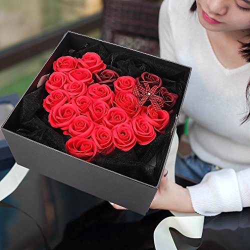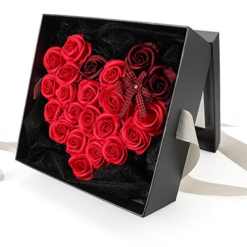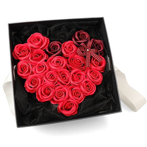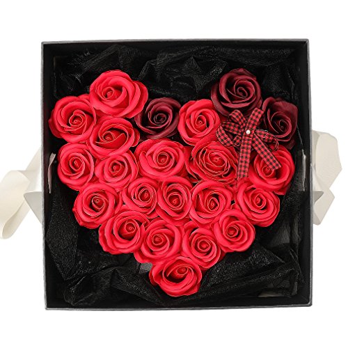 Yobansa 造花 高級石鹸の花のギフトボックス フレグランス ソープフラワー プレゼント 石鹸 ひまわり 枯れない 花 結婚祝い 誕生日 母の日 父の日 定年祝い 還暦祝い 新築祝い 送別会 メッセージカード付き (赤いバラ)