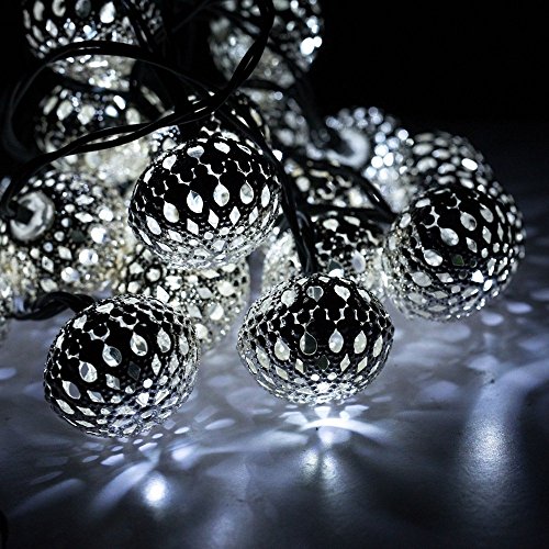 - 太陽の動力の文字列ライト: 20 明るいモロッコ オーブ ボール Led、暖かい白 3000 K、組み込み 600 ma ニッケル水素電池で駆動
