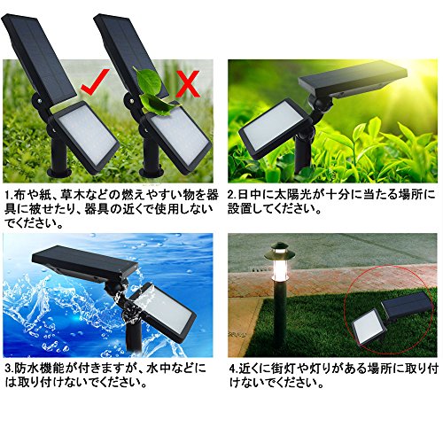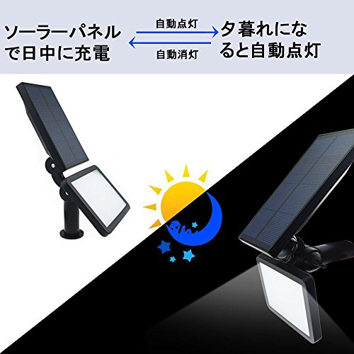 - 感度センサー搭載、ソーラーパネルが日中太陽の光で充電し、夕暮れになると自動点灯モードになります。