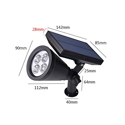 - 地面、壁面へ取り付け可能、防水性も高いという事ですので設置場所に困りません。照射方向とソーラーバッテリーの方向が90度まで調整できて便利です。