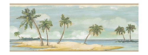York Wallcoverings BG1657BDSMP Border Portfolio Tranquil Islands 8-Inch x 10-Inch Wallpaper Border Memo Sample, Blue/Beige/Green [並行輸入品]