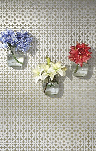 Cleverly placed petals form an over all pattern reminiscent of the '60's. Like a daisy chain, this simple wallcovering is a whimsical charmer. The six in-your-face color combinations, like magenta with brushed silver, add a dash of panache. This pattern is divine with Obsession in coordinated colors.
