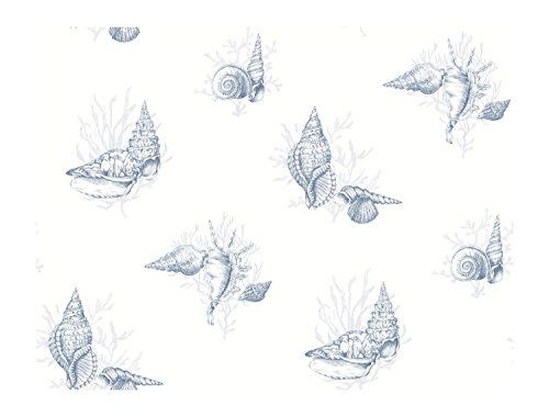 York Wallcoverings CJ2810 Ashford Toiles Shell Toile Prepasted Wallpaper, White/Blue [並行輸入品]