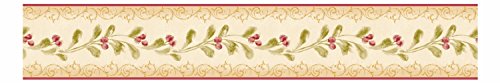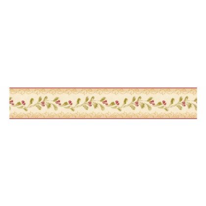 Like a garland of berry vines draped around the room this bright border ties it all together. Place it at counter, chair rail, or ceiling height and enjoy a ribbon of color encircling your dining area or work space. Combine it with its companion paper (SM8423, SM8424, SM8425) for a warm and welcoming appearance. Small Treasures, a collection of diminutive patterned wallpapers, is a wealth of fine design suitable for traditional, contemporary, Early American and Victorian homes. Made in the USA.