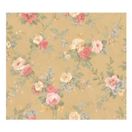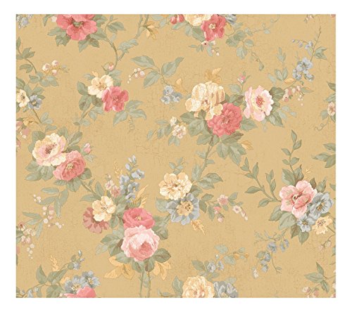 Large nosegays of English roses, floral blooms, flowering buds and their trailing, curling stems and leaves form an allover pattern on crackle plaster that reminds the viewer of a secret key garden or sunny cottage. Pleasant and inviting, this wallpaper is perfect for cozy spaces. This design is well suited to cottage, traditional country or lodge decor and works well for living room, dining room, bathroom, kitchen, hall or entry way and comes in a color palette of brown, cream, blue, gold, green and silver.