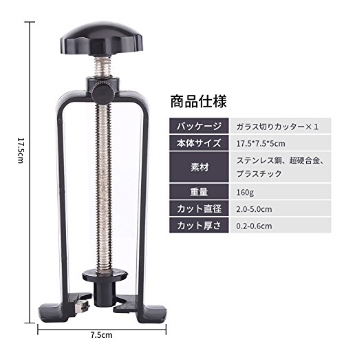 - 【万能な切断機】ワインボトル、ビールボトル、ウイスキーボトル、シャンパンボトルなど様々なボトルをカットできるグラスカッティング。カット直径:2-5cm カット厚さ:0.2-0.6cm バッケージ:ガラス切りカッター×1