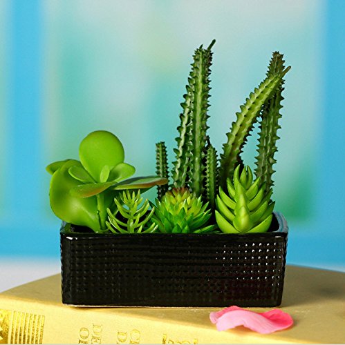 アイデアの盆栽 小さい盆栽 人工植物 光触媒加工 多肉盆栽の置物(人工観葉植物) (黒い盆(多肉+サボテン))