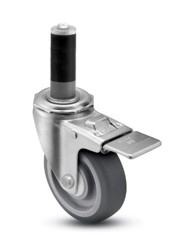 Shepherd Institutional Series 4 Diameter Delrin Bearing Flat MonoTech Wheel Total Lock Caster Expanding Stem 300 lbs Capacity Fits 1-5/8-1-11/16 Round Tube Diameter