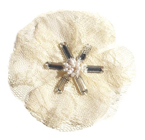 Cuteque International Victorian Lace Flower Embellished with Colored Beads Pearls and Matching Rectangular Plastic Stones Sewn in Center 4-Inch Ivory [並行輸入品]