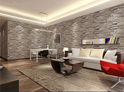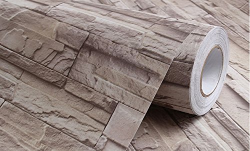 HaokHome 13991 石のレンガの壁のステッカー45cmx6m壁紙ライトグレー防水 かんたんタイル 貼付シールタイプ 家の装飾