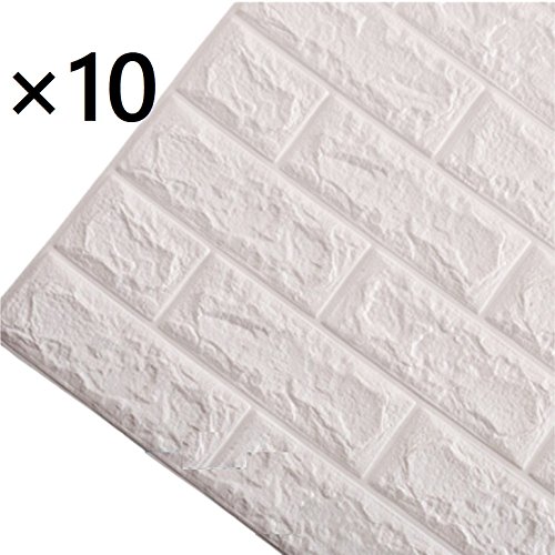 【3D 立体 壁紙 レンガ 70cm × 77cm タイル 厚さ 10mm リメイク ブリックパターン DIY 】 お気に入りの家具や小物を揃えながら作ってきたお部屋であっても、避けられないのが経年劣化です。 また、これから新生活をスタートしようという時でも、家賃を考えるとなかなか新築には手が出せなくて中古を選択するという場合もあります。 そんな、お部屋全体の暗い印象や悩みを解消する方法・・・、そのカギが「壁」にあるのです。 壁はお部屋づくりの基本となるもの、キャンバスです。 良いキャンバスがあるからこそ、そこに置く家具や小物が引き立つのです。 そして白いキャンバス、壁は、お部屋を明るく広く見せてくれる色なのに誰もが失敗しにくい無難に使える便利な色でもあるのです。 「壁紙を替えてみたいけど難しそう・・・」と悩んでいる方、是非、「3D 立体 壁紙 レンガ 70cm × 77cm」を使用してみて下さい。 使い方は簡単です。裏面が強力粘着付きとなっているので、シールを剥がして壁に貼るだけです。 お得な10枚セットもご用意しています。 本品のポイント ・ブリック(レンガ)パターンをガイドに気軽にハサミでカットできる。 ・約10mmの厚さがあるため適度にハリがあり、貼りやすい。 ・クッション性があり衝突衝撃・衝突音を低減できる。 ・防水性・防汚性があり、簡単お手入れでキレイが長持ち。 ・密度の高い材質で、防音性・断熱性に優れている。 ・立体的なレンガの質感で雰囲気のあるお部屋を作れる。 消せないシミや穴、猫ちゃんの爪とぎ痕を上手くカバーできたり、コーナーだけに貼ってくつろぎスペースを作ることもできます。 子供部屋からご高齢の方のお部屋、ダイニング、キッチン、洗面所、寝室、書斎、趣味のお部屋に至るまで、本品には、どのお部屋にも嬉しい機能が備わっています。 軽くて扱いやすいので、壁紙としてのご使用だけでなく、収納ボックスや自作の小物作りにも活用できます。 親子で工作するのも楽しそうですね。 ―簡単だからどんどん貼りたくなる― 我が家や持ち物に愛着を持って大切にする、リメイクして使い続ける楽しさを味わってください。 ご使用方法 1.接着面の汚れをきれいにしてよく乾かして下さい。 2.裏面のシールを剥がして貼って下さい。 ※時間が経つと剥がれ難くなります。貼り直しは速やかに行って下さい。