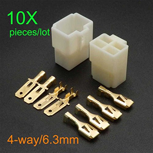 YunShuo 10pcs 1 2 3 4 6 8p Female Spade Insulated Wire Connectors Crimp Electrical Terminals 6.3mm (4P)