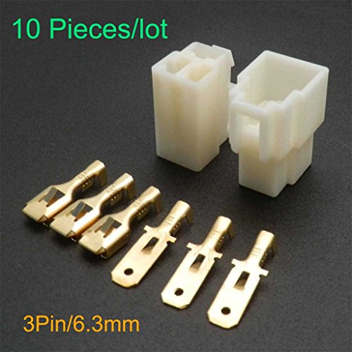 YunShuo 10pcs 1 2 3 4 6 8p Female Spade Insulated Wire Connectors Crimp Electrical Terminals 6.3mm (3P)